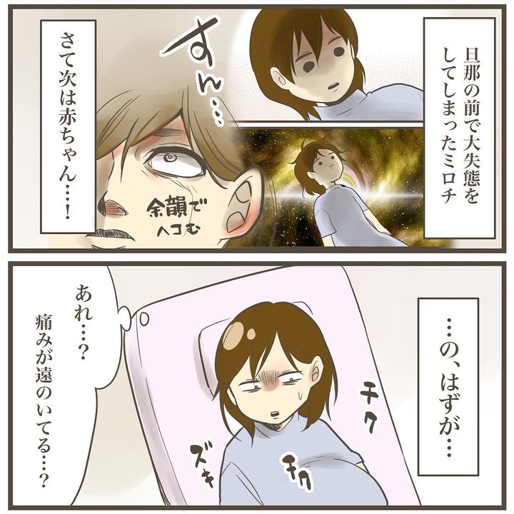 いきんだ末に出たのは、赤ちゃんではありませんでした…。助産師さんのナイスフォローに助けられ、お産は続きます。