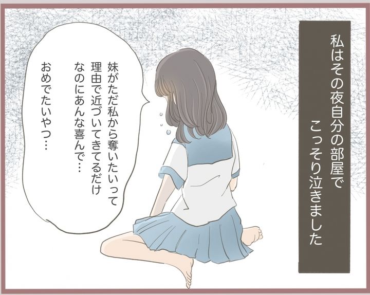ゆいには一つ年下のフランス人形のように美形の妹リカがいて…。リカはゆいの彼氏に接近し、ゆいには「男の趣味が悪い」「お姉ちゃんには妥当か」と上から目線で嘲笑した。そしてその日は訪れた。ゆいは彼氏から「別れてほしい」と言われる。