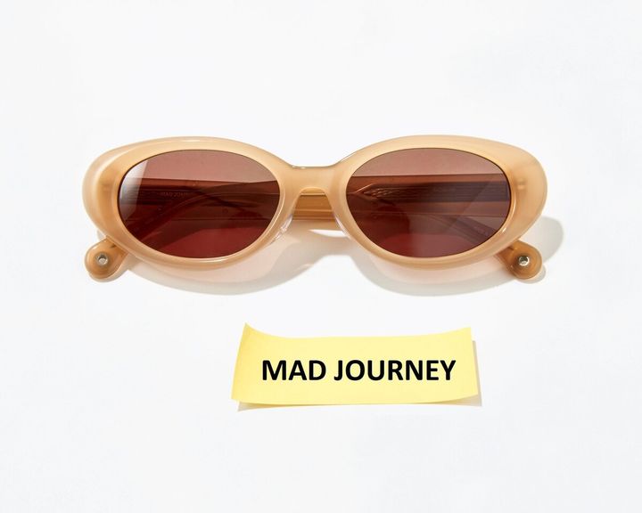 肌の色になじむベージュピンクのフレームで顔印象まで明るくなりそう! メイクするようにかけてみて。¥11,000/マッドジャーニー(眼鏡市場お客様相談室)