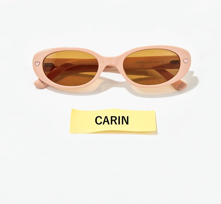 マットなピンクのフレームにライトブラウンのレンズを合わせてレトロ&ガーリーに。フレームの両サイドをさりげなく飾るハートマークがアクセント♡ ¥19,800/カリン(H3O ファッションビュロー)