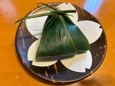 こし餡と粒餡の2種類があり、笹の葉を開くと、つるんとした見た目のお饅頭が登場。