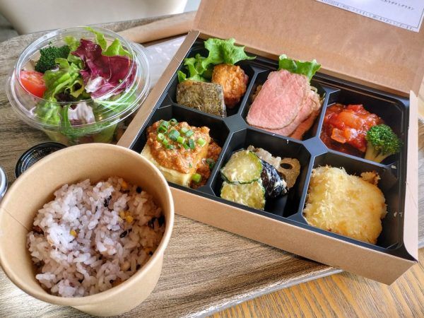今回はこちらのカフェでランチをしてきました。 地元の食材を活かしたお弁当や、量り売りの惣菜、季節のデザートなどのメニューが並びます。