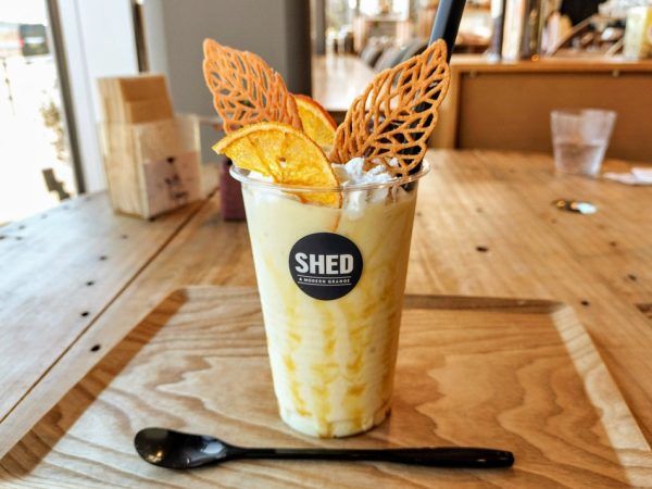 そしてデザートにはお芋のシェイク(660円)をぜひ味わって! 茨城県産の紅はるかを使った濃厚な干し芋の風味とバニラアイスの相性が抜群で、ねっとりとした食感が楽しめます。 トッピングにはリーフクッキーやドライオレンジが添えられていて、爽やかな香りがアクセントになっています。