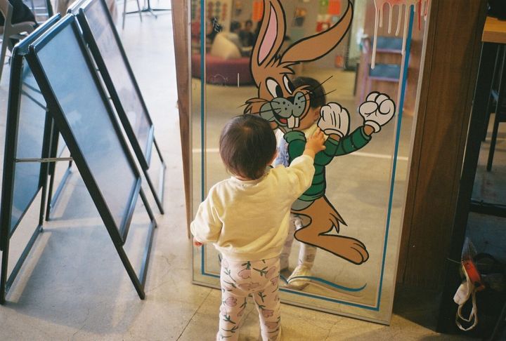 アート作品もたくさんあるので、カフェの中を歩きながら子供と一緒に楽しめます。