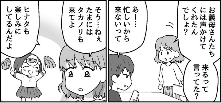 せっかくのヒナタの発表会も「行かないよ、面倒くさい」の一言で終わりです。写真だけあればいいと言うのです。それを見て、自分も行った気になるからと……。休日に子どもの行事にも付き合えないくらい疲れているのでしょうか。
