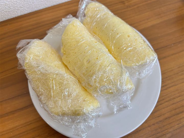 生地が冷めてからラップを剥がしてみると…。
