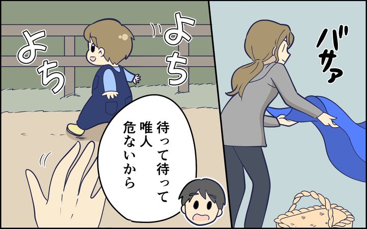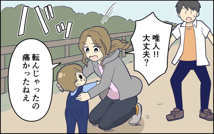 妻が怖い…。「なんで黙って見てるの?」って言うけど、僕なりに息子のことを見ていたつもりだし、僕が勝手に転んだ息子のお世話をしたら、菜緒ちゃんは「そうじゃない! こうして!」って不機嫌になるでしょう? だから手を出さずにいただけなのに…。