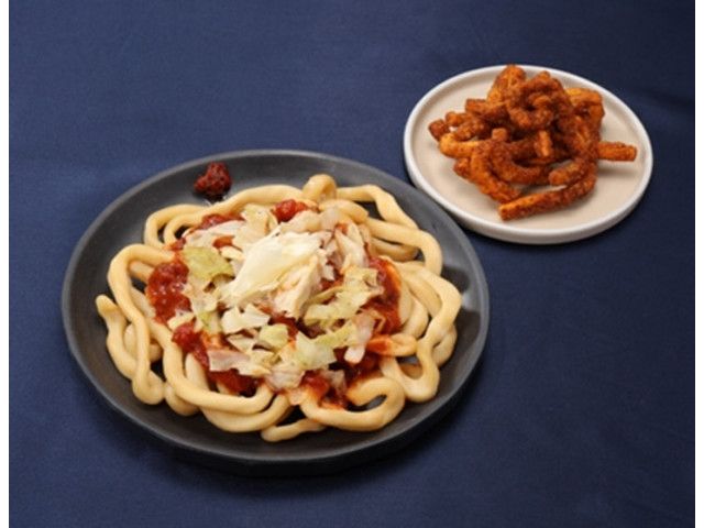 テレビ山梨の人気番組「スゴろく」とのコラボ商品です。吉田うどん風のコシの強い麺にトマトバジルソースをあわせた新感覚のうどんパスタです。別添の揚げうどんの食感も楽しめます。 カロリー:567kcal 【販売地域】関東