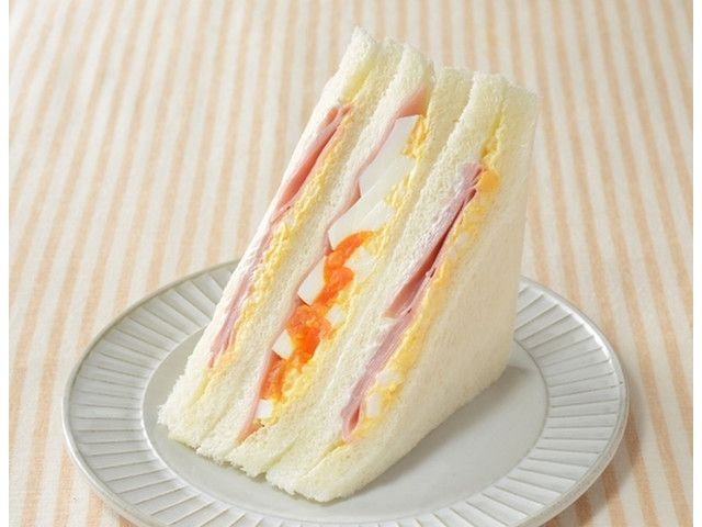 ジューシーなハムとゆでたまご、たまごサラダを使用した、人気具材のハムとたまごを楽しめるサンドイッチです。