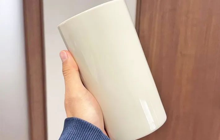 直径約9cm×高さ約16cmの筒形で、インテリアに馴染みやすいデザインが特徴です。