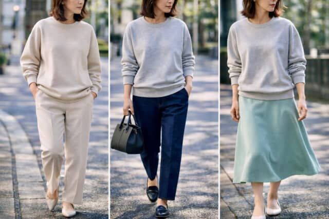 スウェットはラクなアイテムですが、大人のコーデでは“どう見せるか”が重要です。シルエット、合わせ方、素材感の3つに少し意識を向けて、ぜひバランスを見直してみてください。<text:ミミ 監修:YOMI(パーソナルスタイリスト)> ※画像は生成AIで作成しています