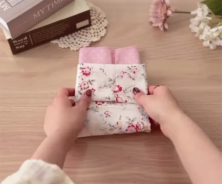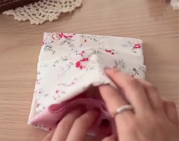 ひっくり返して、左右の端を中心に揃えて畳んでください。