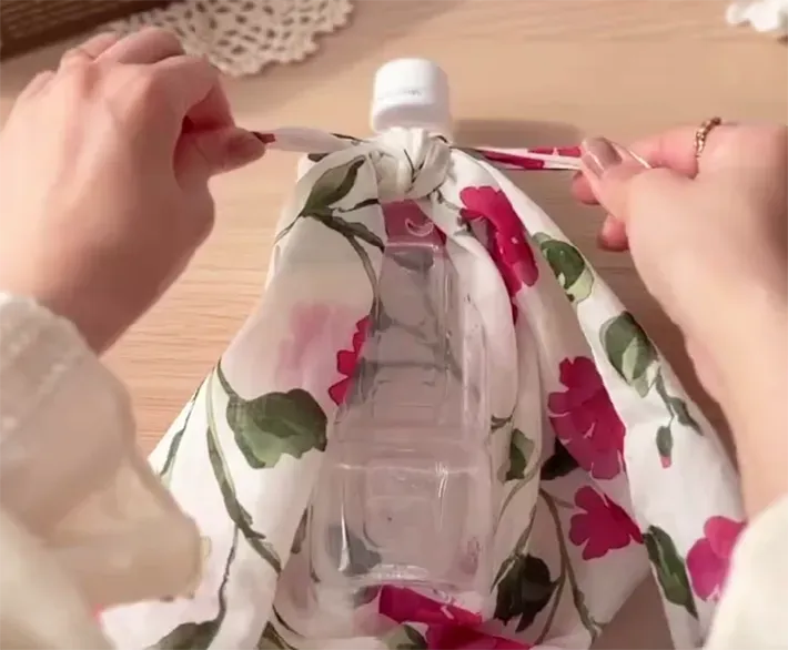 2. ハンカチを活用して春のお出かけを華やかに! 結んで作る『ボトルカバー』の作り方