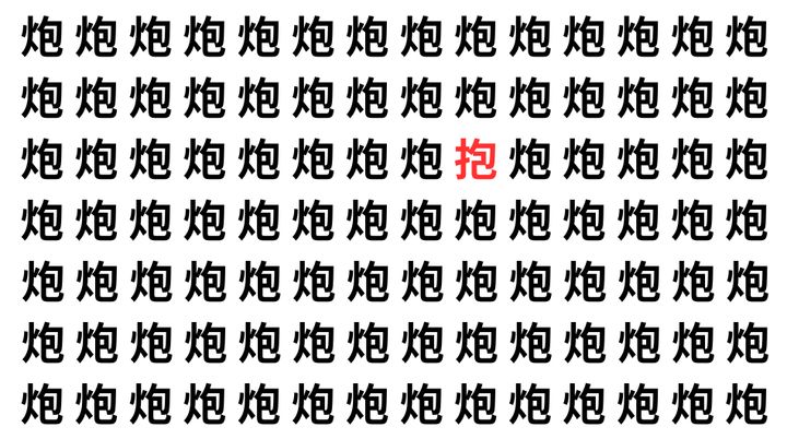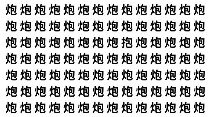 たくさんの「炮」の中に、よく似た別の漢字が1文字だけ隠れています。