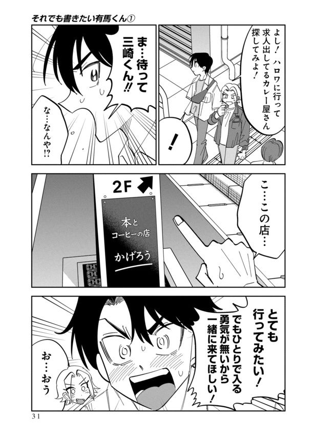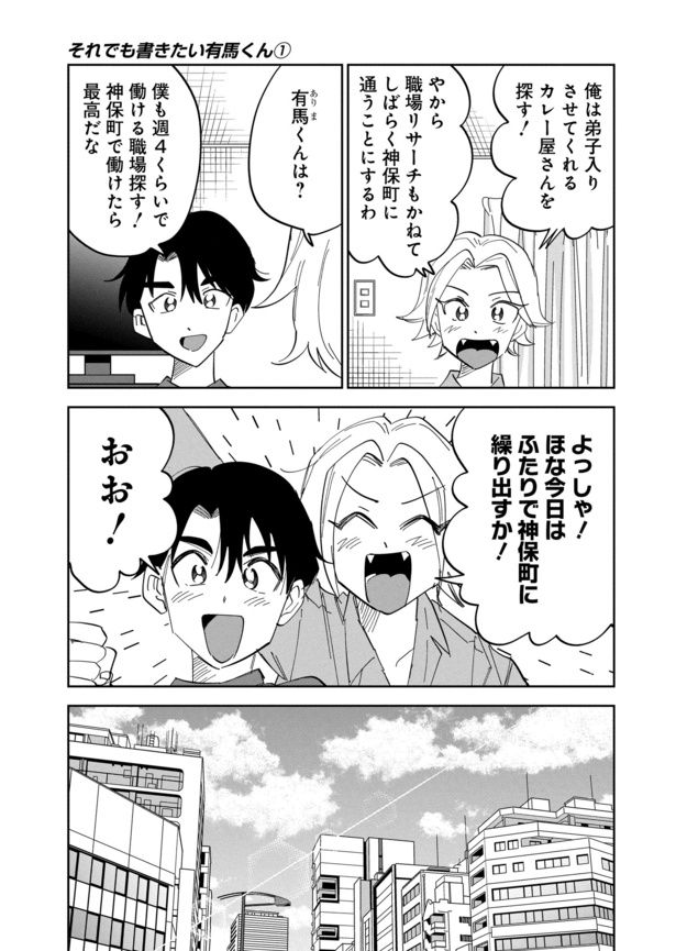 ブラック企業の社畜の有馬くん。会社が倒産したことをきっかけに、夢だった小説家を目指すことに! カレー屋になりたい元同期の三崎くんと神保町でルームシェアをスタートして夢への道を歩み始めた。オトナだって、夢が見たい。でこぼこ道でも、二人ならのりこえられる! 悩める背中を押してくれる脱サラ小説家コメディ『それでも書きたい有馬くん』をお楽しみください!