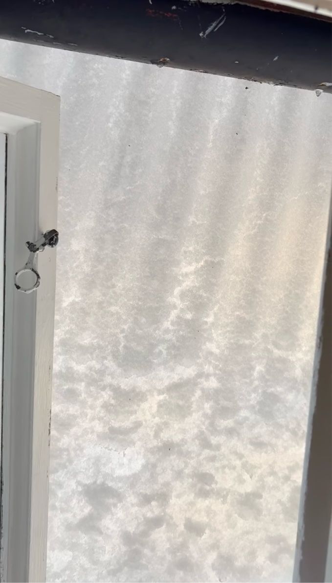ある朝、家の中がいつもより暗いことに気が付いた撮影者さん。 そこで窓を開けてみると・・・、なんと視界を覆うようにして雪が!