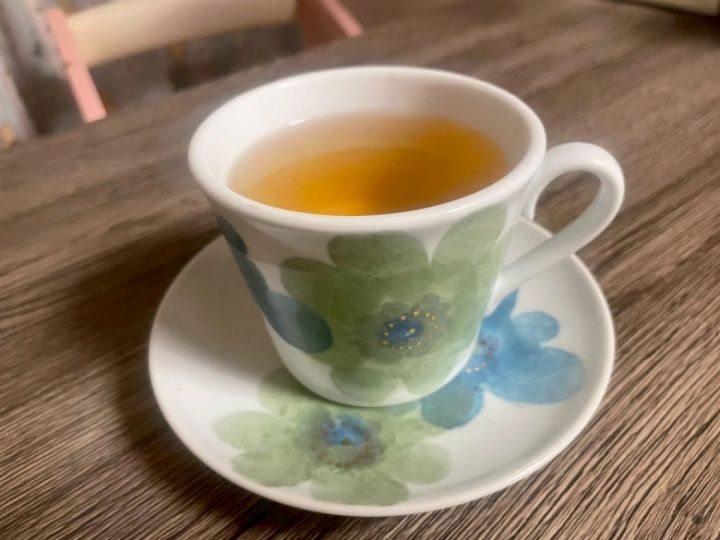 こちらはカモミールやスペアミントが入ったカフェインフリーのハーブティーです。 頭の中で呪文のように(いまリラックスしてるぞ〜)と唱えながら飲むのがポイントです。