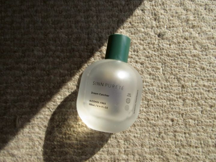 そんな枕には寝る前に、ピローミストとして、SINN PURETÉのマインドフル フレグランス / Dream Catcher を 1プッシュ吹きかけています。こちらは深い眠りにつく為のフレグランス。 ライトシプレ調の香りで、布団の中で色々考えてしまう頭の中を、ふにふににほぐしてくれます。