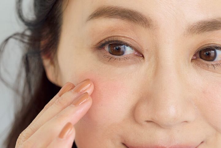指先に取り、頬のやや高めの位置を中心にポンポンとのせる。