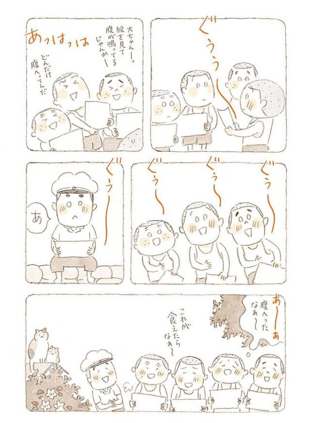 おいしそうな絵に、みんなお腹がぐぅ~。じいちゃんの少年時代の思い出/ねことじいちゃん8(39)