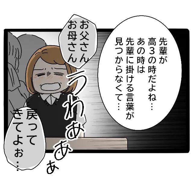 そしてよっちゃんは、みずほ先輩のご両親が事故で亡くなった時のことを覚えているかと聞いてきました。もちろんはっきりと覚えています。まだ高校生の時でしたが、あんなに悲しい気持ちになったことはありません。