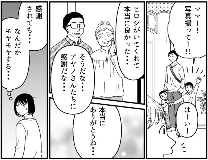 さらにタチが悪いのは、義両親も義姉もこの状況が「私に対して申し訳ないこと」だと理解していることなのです。しっかりと謝罪や感謝を伝えられてしまうから、私は何も言い返すことができなくなるのでした。