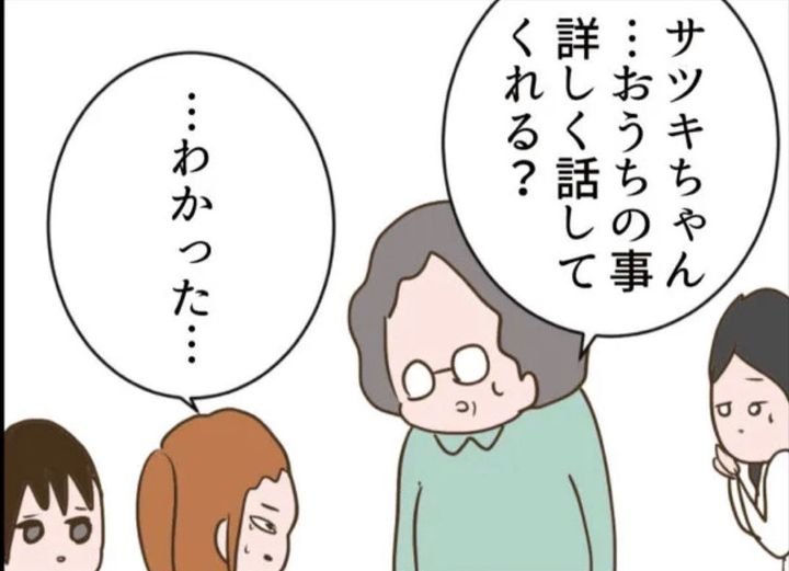 マルコさんが人から聞いた話にフィクションを加えて漫画化した「怖すぎる隣人」。園長先生から「何かつらいことはない?」「怒らないから話してみて」と言われたサツキちゃんは、「ママが怖い、おうちが怖い」と本音を語りだした。