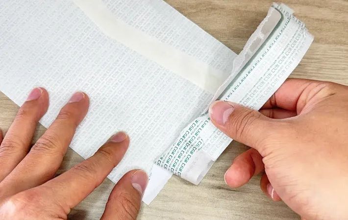 ここが最初の取っ掛かりになるので、丁寧にめくって破れる起点を作ることが大切です。