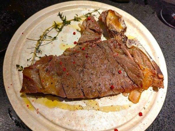 ステーキのソースは3種類で、手づくり葡萄ソース・岩塩・竹炭です。骨付きのワイルドさとジューシーな味わいのお肉にピッタリなソースです。ナチュラルワインに合う、ジャンルレスなお料理は面白くておいしいです。季節感を大切にした小皿もおいしく、アットホームな雰囲気も楽しいので、また来たくなるワインバーです。いいですね~。
