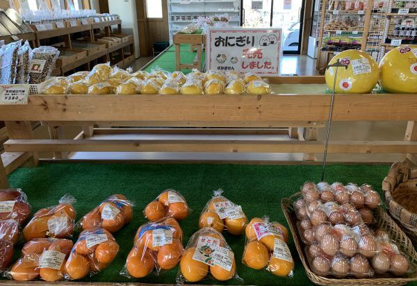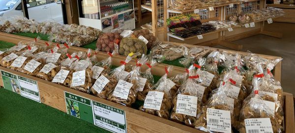 農産物、地域の加工品、地元の銘菓。 お花やハーブの苗もあります。