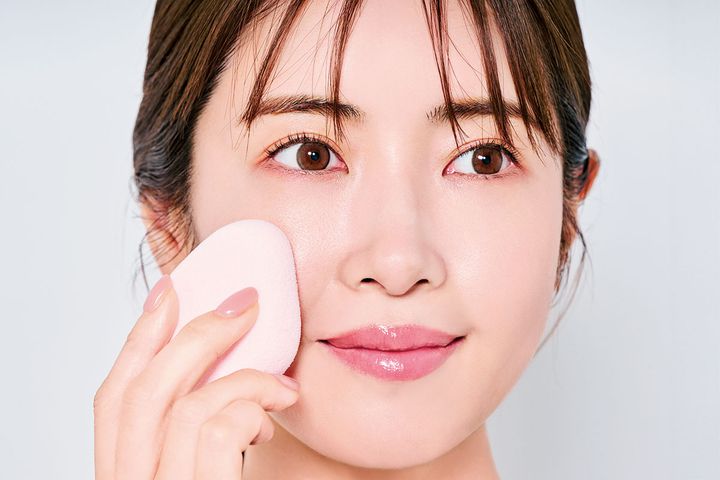 指塗りだと実は肌の表面にのってるだけ。面の広いスポンジを水やミストで軽く濡らしギュッとしぼり、毛穴に入れ込む感じでポンポン。濡らすことでファンデがスポンジに吸収されず、ヨレずに密着するんです。ツヤまでUPしていいことずくめ。