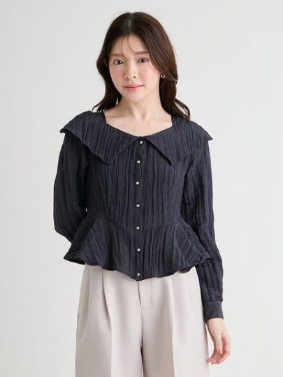 【洗える】ワイドカラーペプラムブラウス/CELFORD