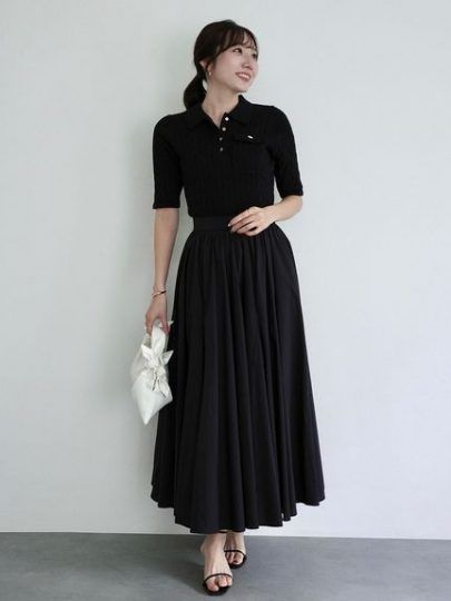 クラシカルなケーブル編みのポロニットとたっぷりと分量感のあるフレアスカートを組み合わせた、コーデに悩まず1枚で着映えするワンピース。スカート部分は軽やかなコットン素材をふんだんに使用し。動くたびに広がり足元を華やかに演出します。