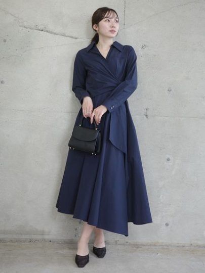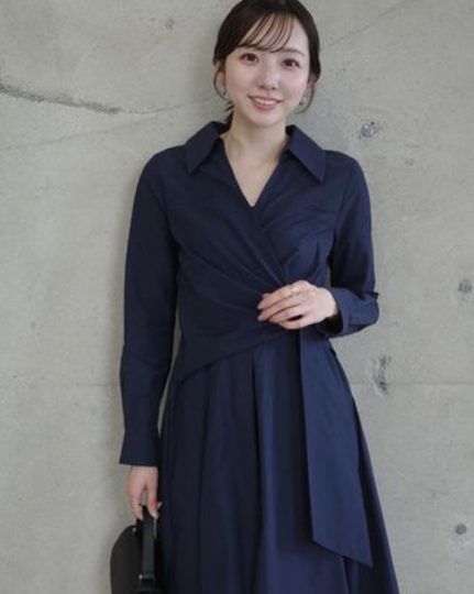 カシュクールデザインを組み合わせ、フィットアンドフレアが美しいシルエットを叶えるシャツワンピース。メリハリのあるラインが美しく自然なスタイルアップを叶えます。程よく開いたネックラインが顔まわりをすっきりと見せ抜け感を演出。フロントのリボンディティールもアクセントに。