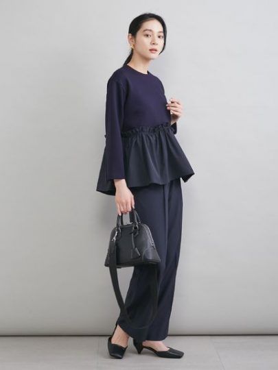 ペプラムブラウス×ワンタックパンツ SETUP/Mila owen