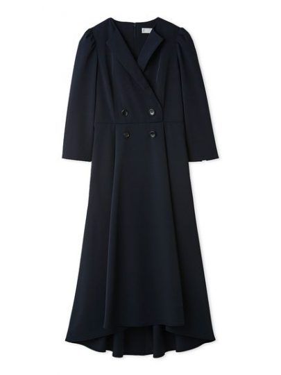 幅広いシーンで着られるトレンチをモチーフにした洗練デザイン。細幅のラペルカラーとシャープなV開きで顔周りはすっきりさせ、ウエスト切り替えを入れることでスタイルアップも期待できます