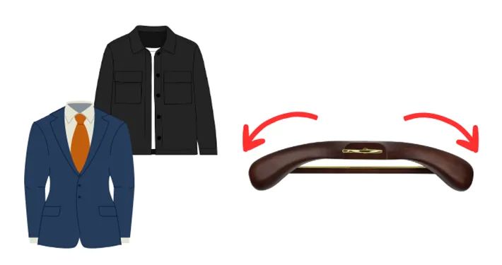 スーツ・ジャケットを掛ける際は、ハンガーの両端が内側にカーブしているなど、人体のラインを意識した形状のものを選ぶと型崩れが起きません。