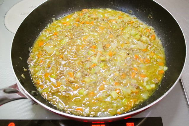 みじん切りにした野菜をフライパンで蒸し煮にすることで短時間で火が通り、そのままひき肉、カレー粉、薄力粉を炒めたり、水分を加えて軽く煮たりと、フライパンひとつで気軽に作れました。