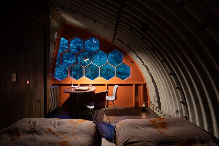 愛知県東三河の地に佇む「コルゲートハウス」は、稀代のエンジニアであり建築家の川合健二が、地球視点のエネルギーから導き出したメタボリズム建築の傑作。巨匠・丹下健三のパートナーとしても知られた彼が、自らの手で未来の家を探求し創り上げたこの空間は、大地から独立した生命体のような瑞々しさを放つ。“一晩、地球と縁を切ってみる”というコンセプト通り、効率を極めた鉄の造形は、住む者を常識の外へと連れ出してくれる。エアコン等の設備を最小限に留めた一棟貸しの空間は、建築当時の哲学を肌で感じるための純粋な装置といえるだろう。