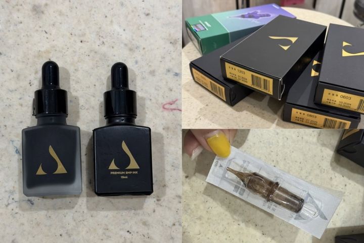 月乃さんは、日本における頭皮アートメイクの先駆者。看護師免許を持つ医療従事者であり、この道を志した理由は「ご家族が薄毛に悩んでいたから」という、愛に溢れたエピソードがあるんです。日本に技術が定着するずっと前から、美容大国・韓国へ何度も単身修行に赴き、常に世界レベルの最新技術をアップデートし続けている職人魂の持ち主。さらに、自分の体に直接入れるものだからこそ、色素(インク)は安全性が公的に認められ、エビデンスがしっかりしているメーカーのものだけを厳選。さらに、地肌の質感や毛根の密度に合わせて数種類のニードル(針)を贅沢に使い分けるという徹底ぶり。「ただ色をのせる」のではなく、ミリ単位で「自然な美しさ」を追求するその姿勢に、私は感動しました。