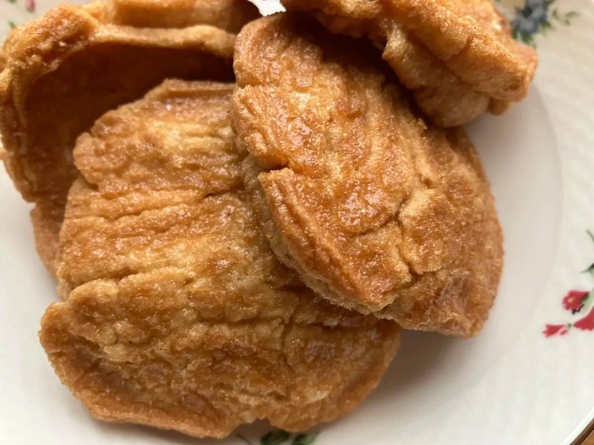 小麦粉原料の生地を米油で揚げて、醤油・三温糖・水飴などで作った蜜で味付けされているそう♪