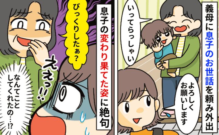 息子も義母には慣れているので「ばあばのお家に行くよ」と言うと、「ばーばー」と手を叩いて喜びます。しかし、迎えに行くと予想もしていなかった息子の姿を見ることに……。