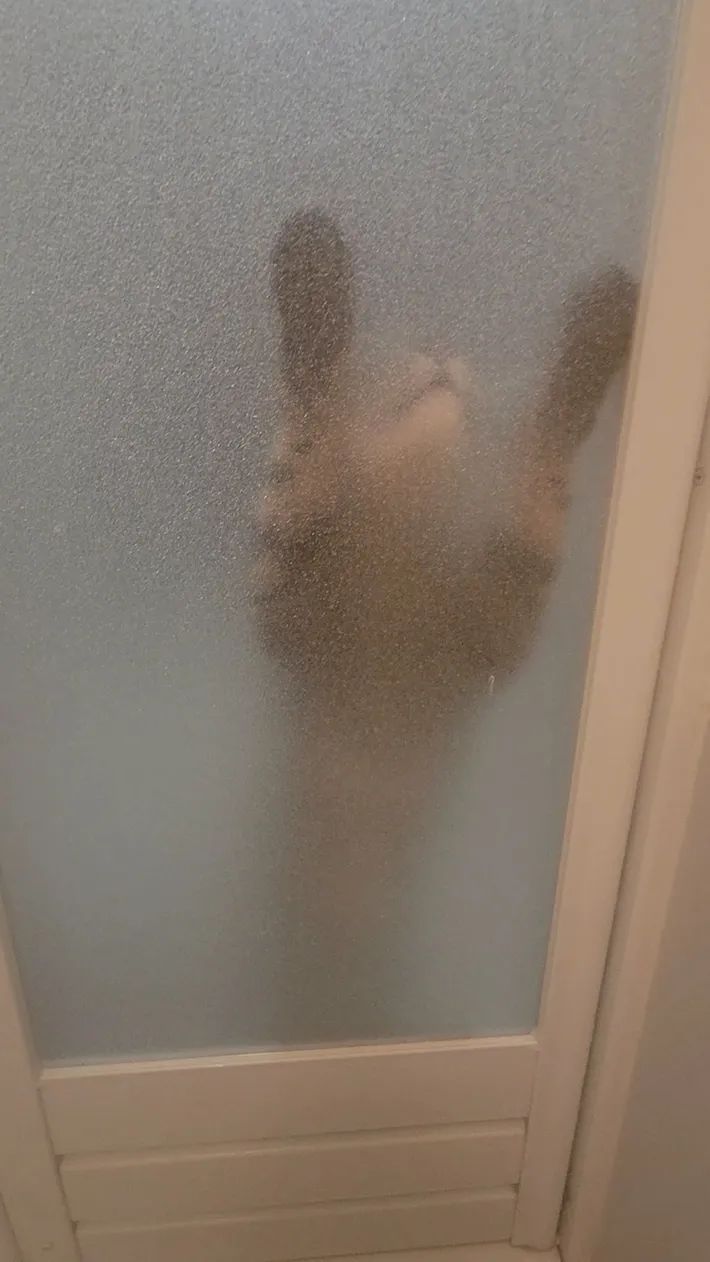 すりガラス越しに「絶対いいものを食べているでしょ!」と訴えかけてくるようなシルエットに、クスッとしてしまいますね。