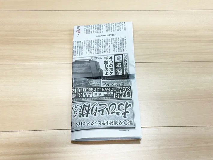 新聞紙1枚を半分に折り、縦に置いた状態でスタートします!