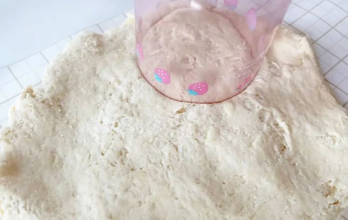そして、また型を抜きます。最後の1つは、手で丸い形を作ってくださいね。