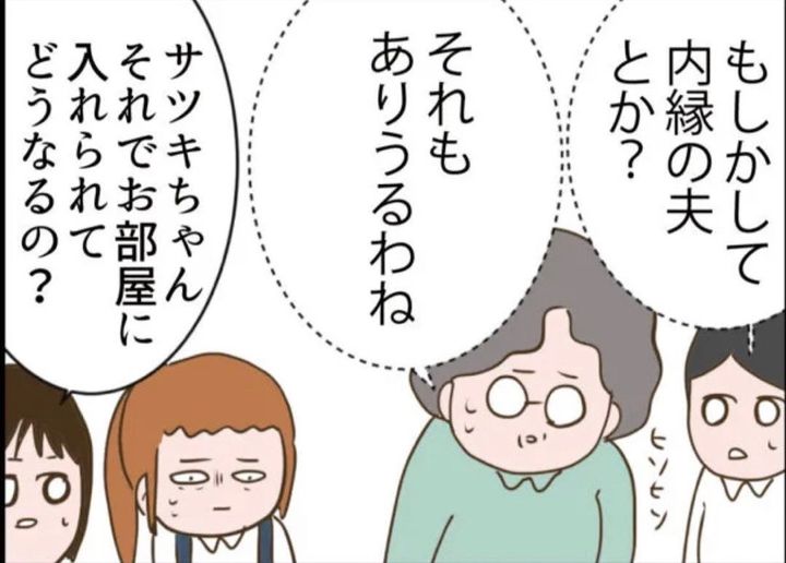 マルコさんが人から聞いた話にフィクションを加えて漫画化した「怖すぎる隣人」。サツキちゃんは家に帰ると無理やり女に勉強させられ、間違えると真っ暗な部屋に閉じ込められてしまうと話した。