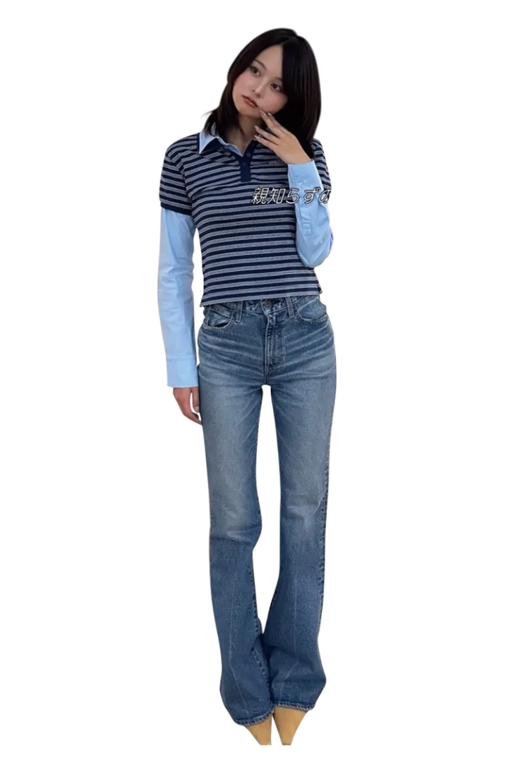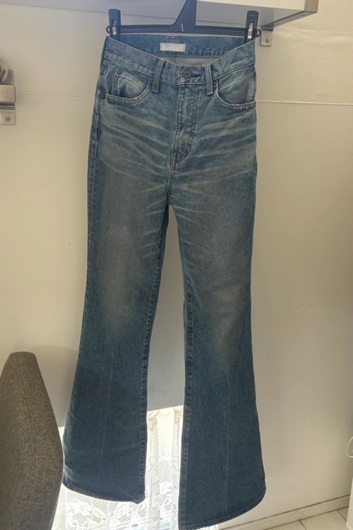 「とにかくスタイルが盛れるMOUSSYのデニム。フレアーなすそからミュールの先をちょこんと出すのが今の気分♡ 理想のシルエットにやっと出会えたって感動した服なので、高身長のコは一度、試してみてほしい♡