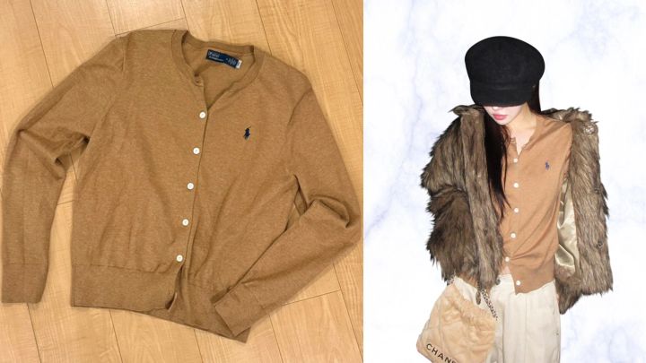 「カーディガンの王道、Polo Ralph Laurenが私の名品。あわせる服を選ばないし、定番なアイテムなのでカラー違いを長年愛用しています。デニムなどラフなアイテムもお上品に仕上がるのが最大の魅力です」