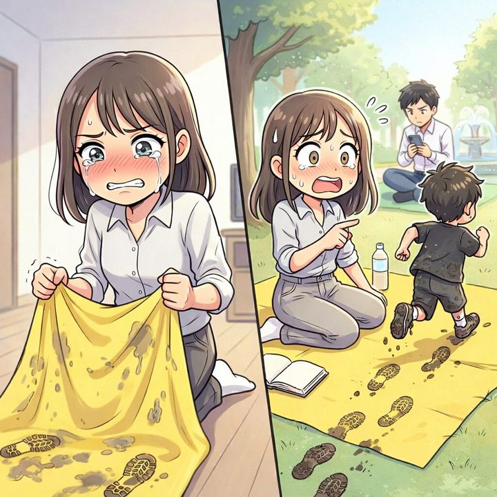 先ほどまで近くの噴水広場で遊んでいたのでしょう。上司のお子さんが、泥だらけになった靴のまま、私のレジャーシートの上を猛スピードで走り抜けたのです。