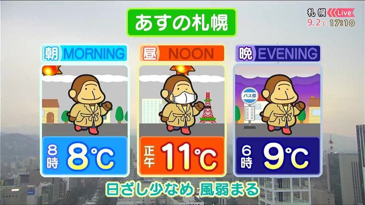 あす31日(火)の札幌です!朝昼晩の天気をもんすけでお伝えします!